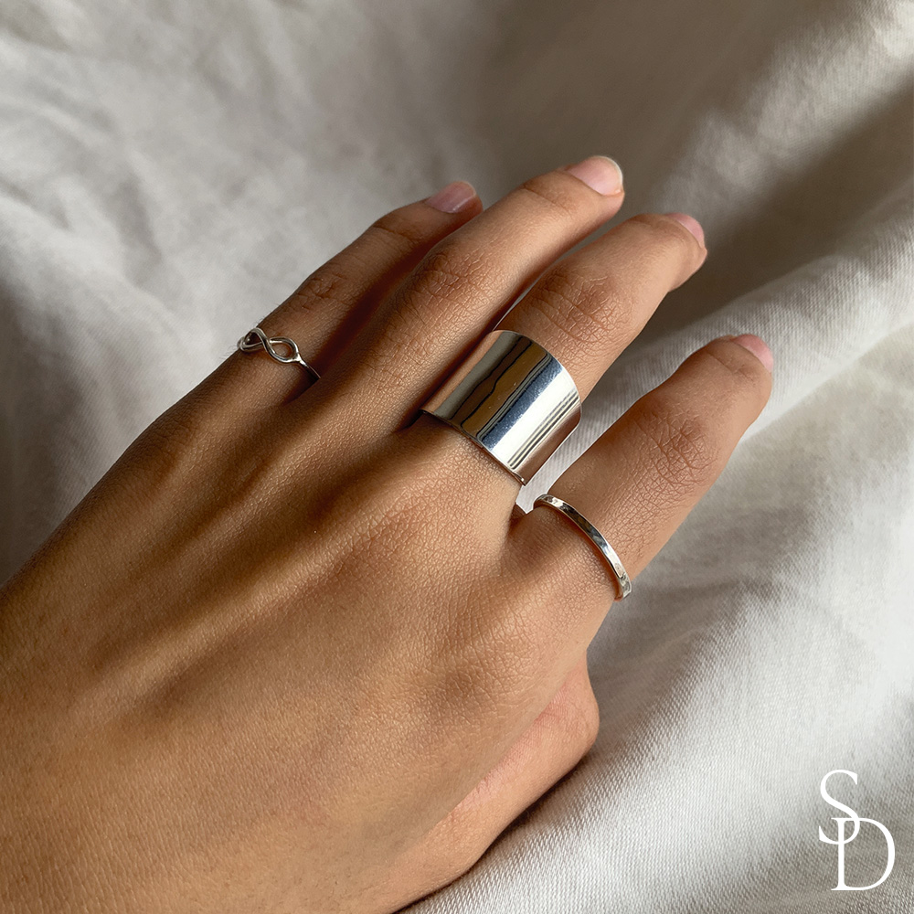 Tiene una forma elemental y sobria, combina a la perfección con cualquier otra joyita. Puedes llevarlo en cualquier dedo, solo o junto a otros anillos.