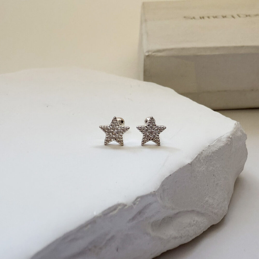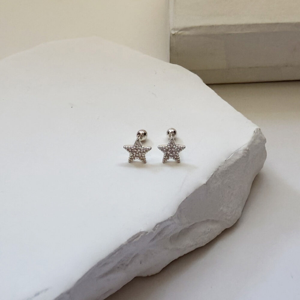 Arete star circón seguro tornillo plata 925