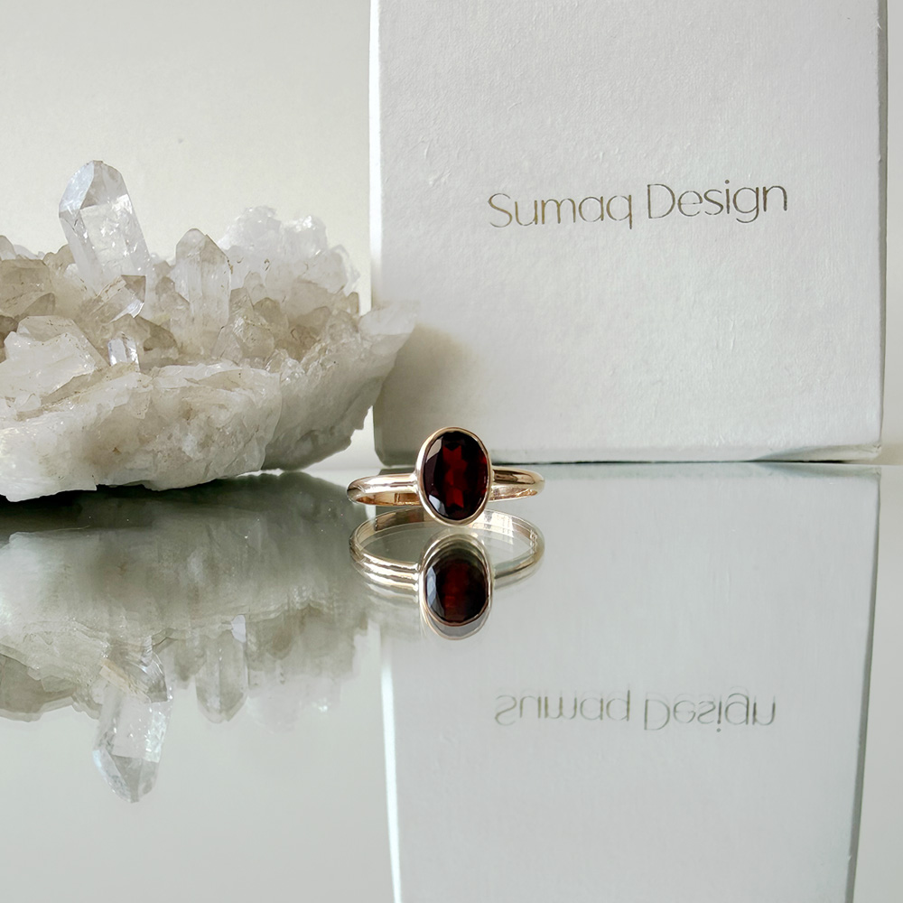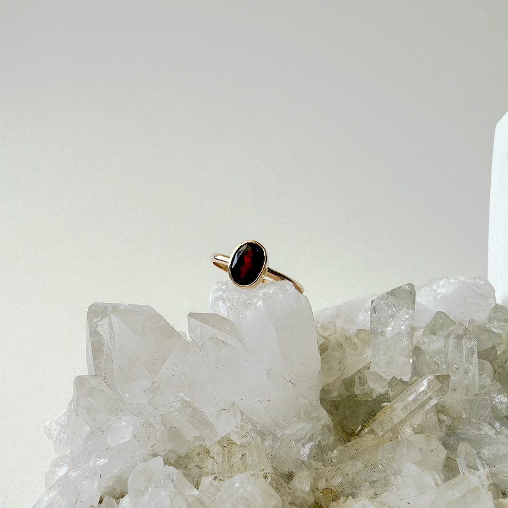Anillo oro 18 kilates con piedra natural granate oval