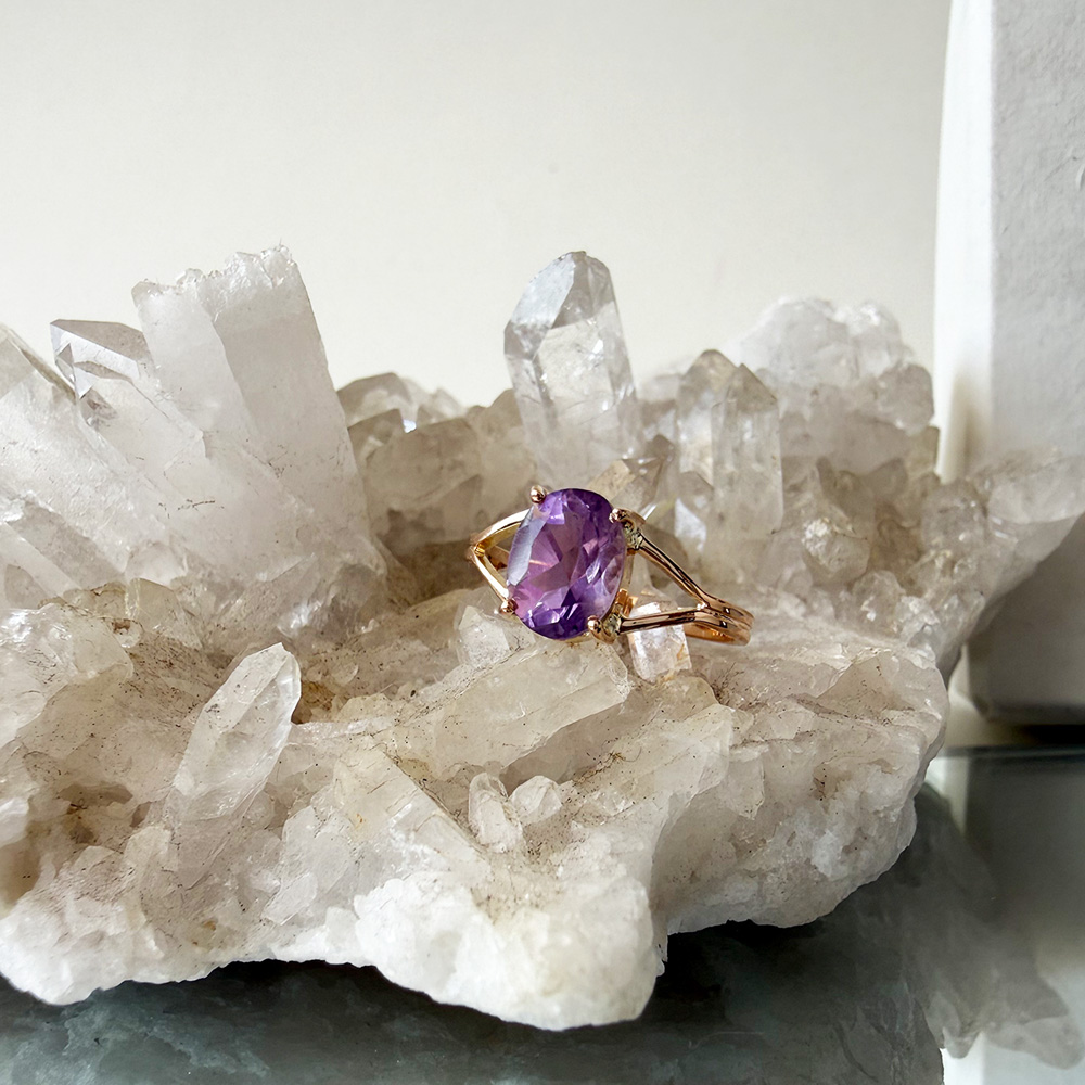 Anillo oro 18 kilates con piedra natural amatista oval