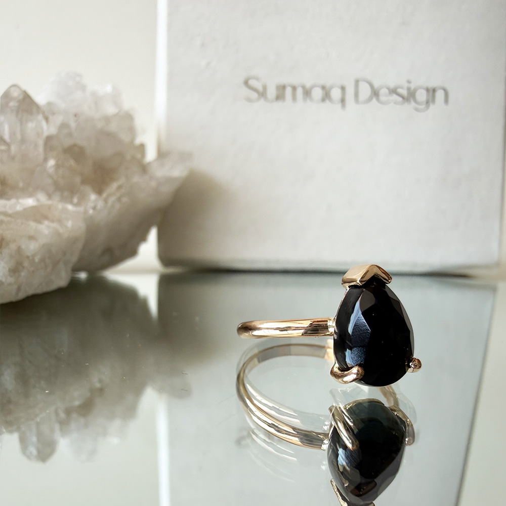 Anillo oro 18 kilates con piedra natural onix gota