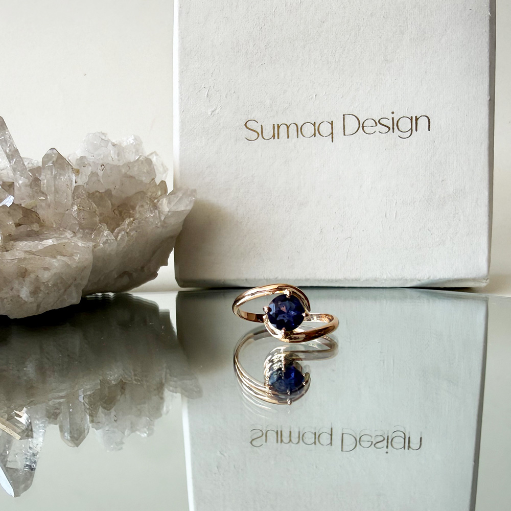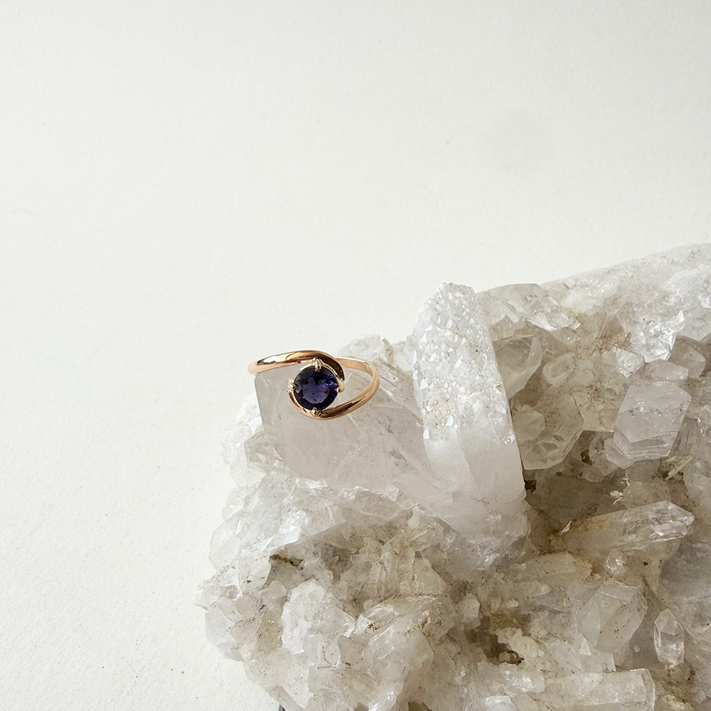 Anillo oro 18 kilates con piedra natural Iaolita redondo