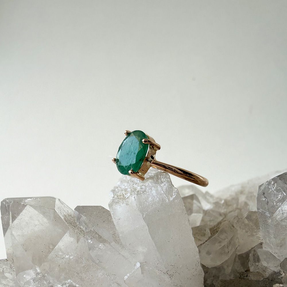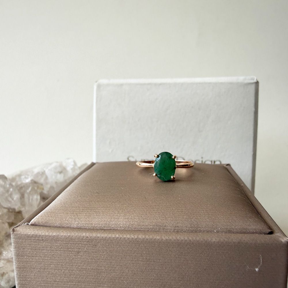 Anillo oro 18 kilates con piedra natural esmeralda oval