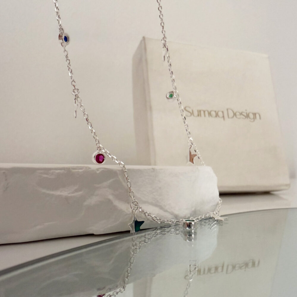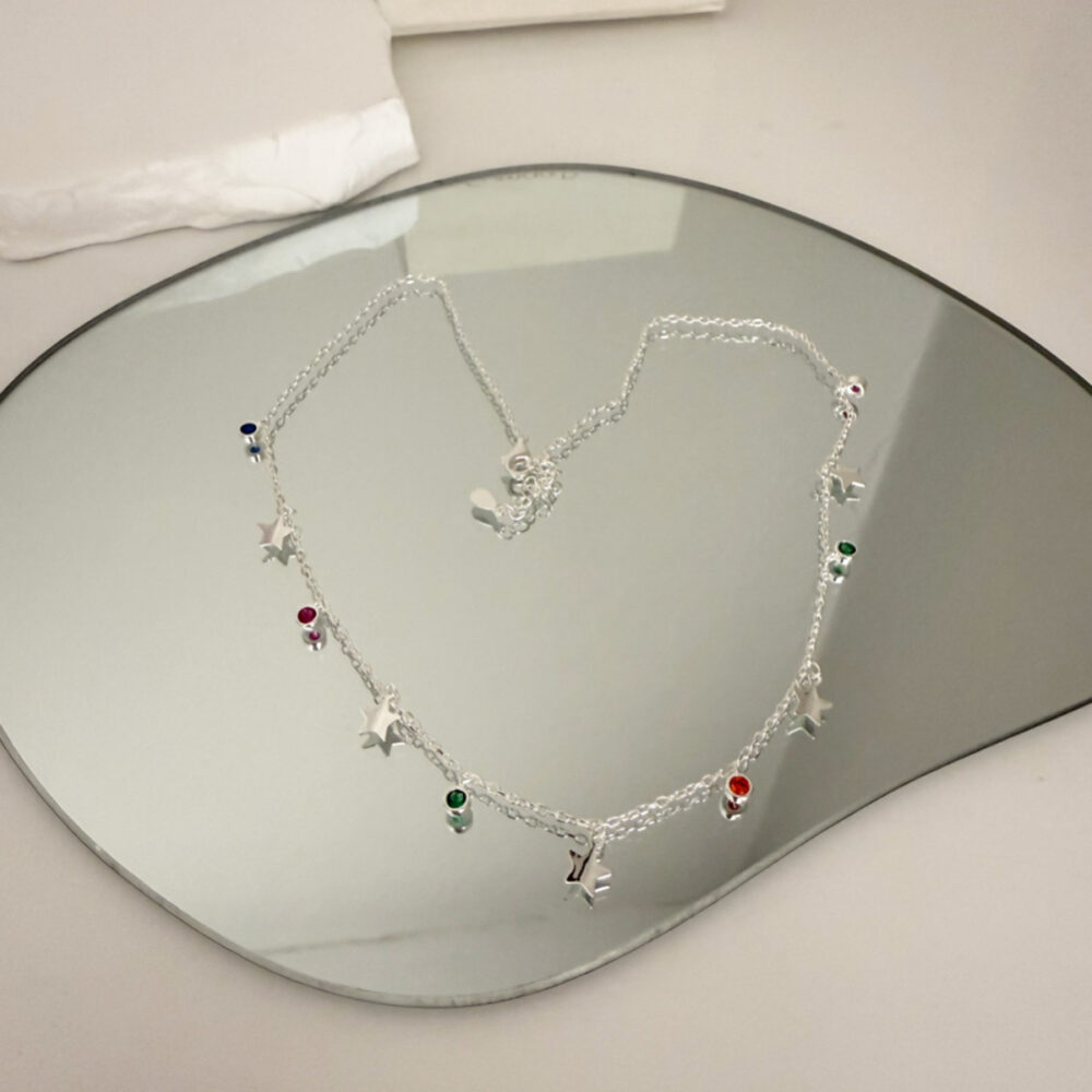 El Collar Multicolor con una cadena fina de plata con piedritas de colores es perfecto para esos días que necesitas una joya para añadir un toque a tu look. ✨