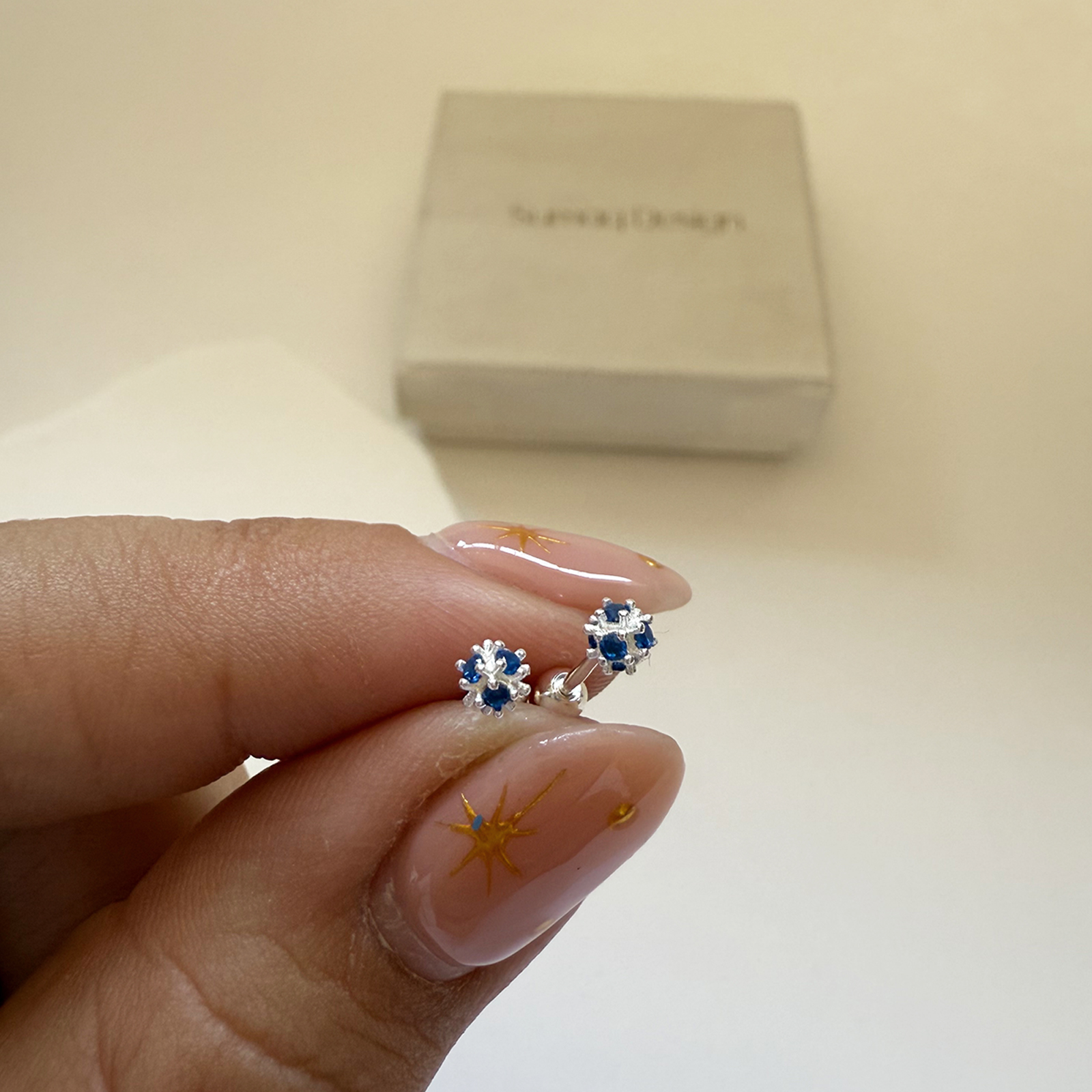 BLUE Redondo zarcillo de plata #6