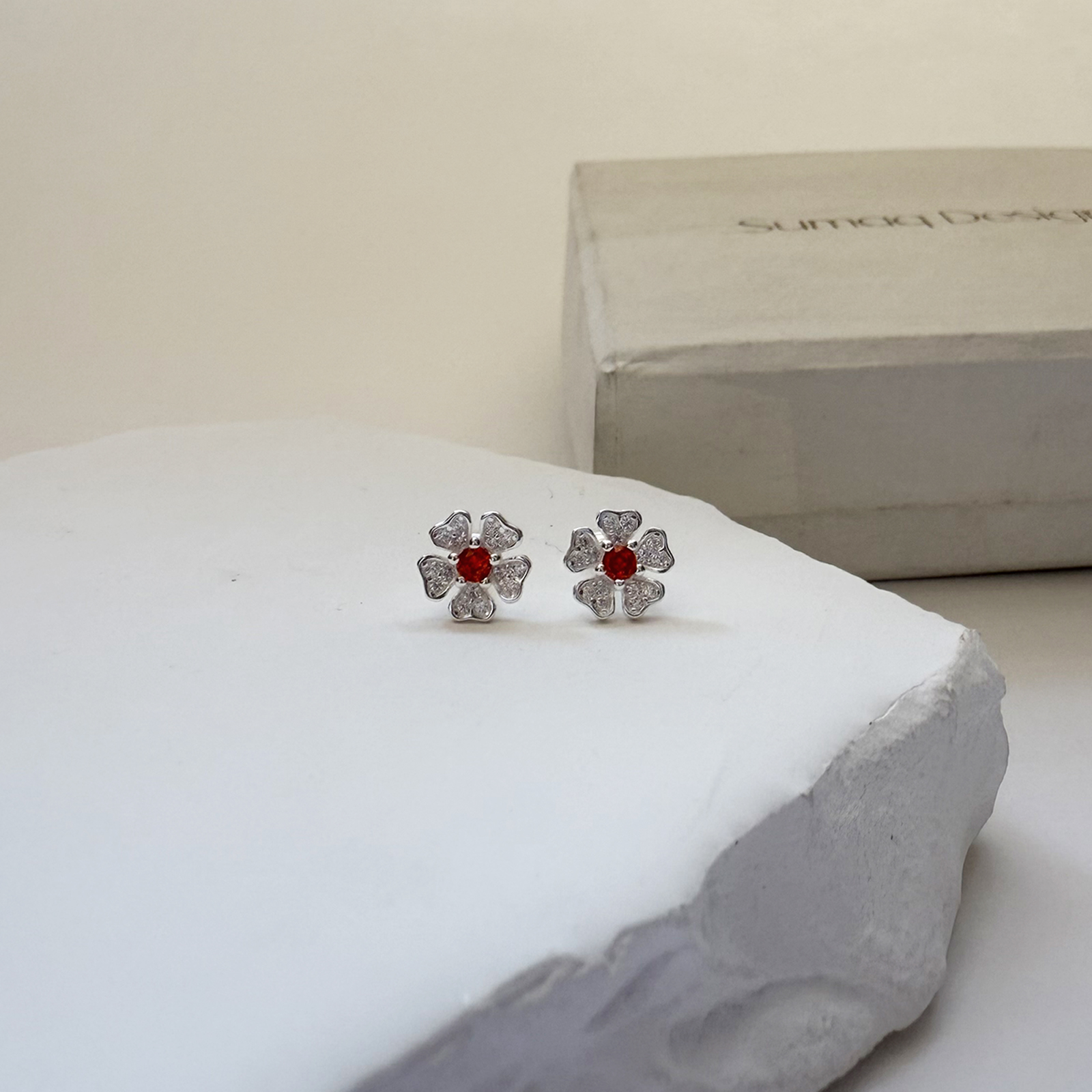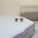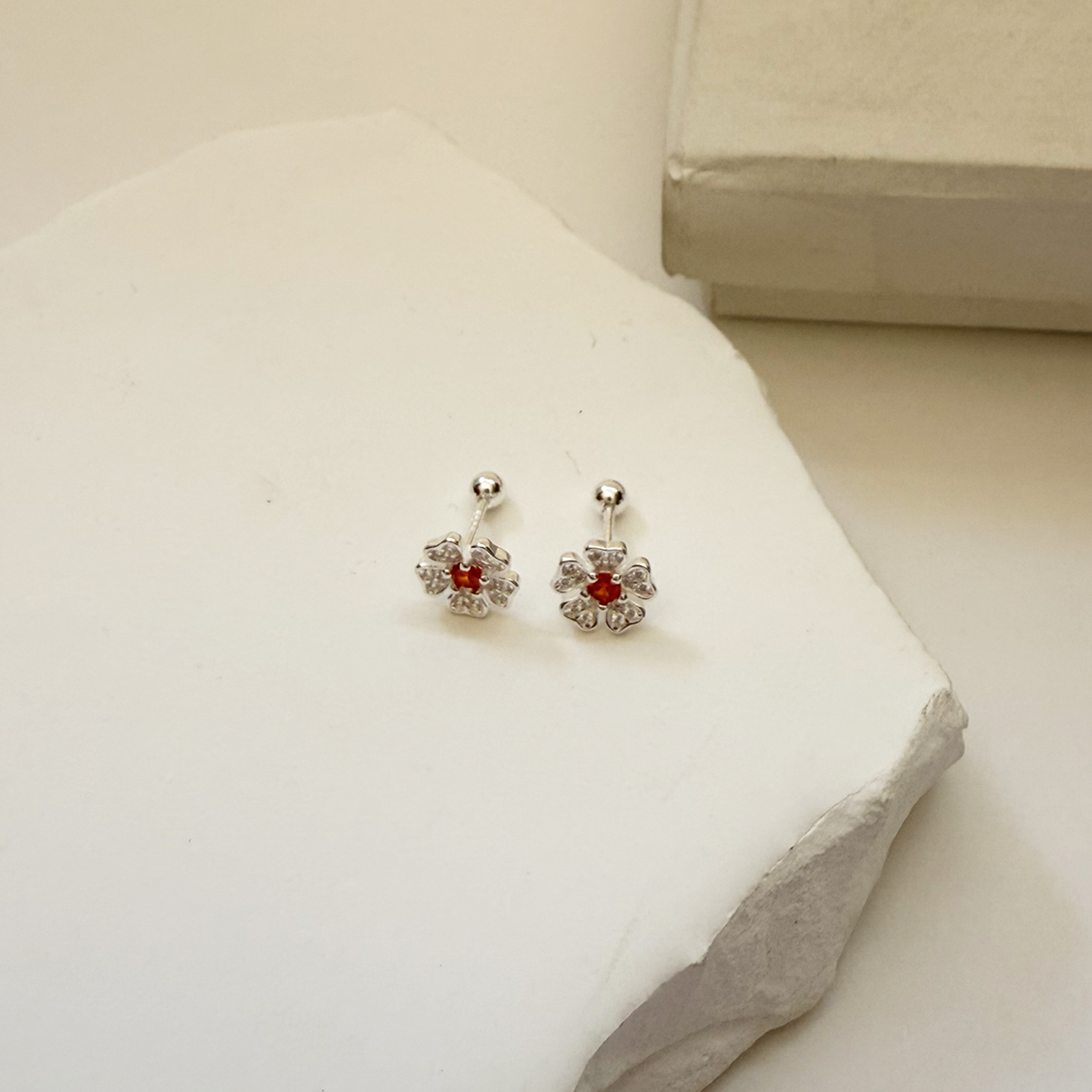 Arete flor naranja seguro tornillo plata 925