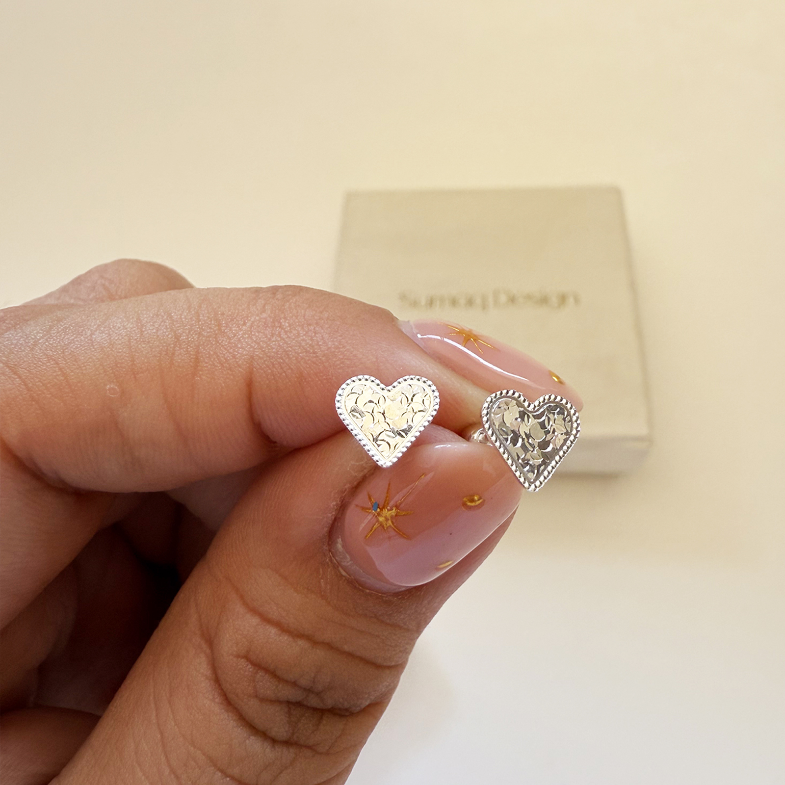 Arete Heart diamantado seguro tornillo plata 925