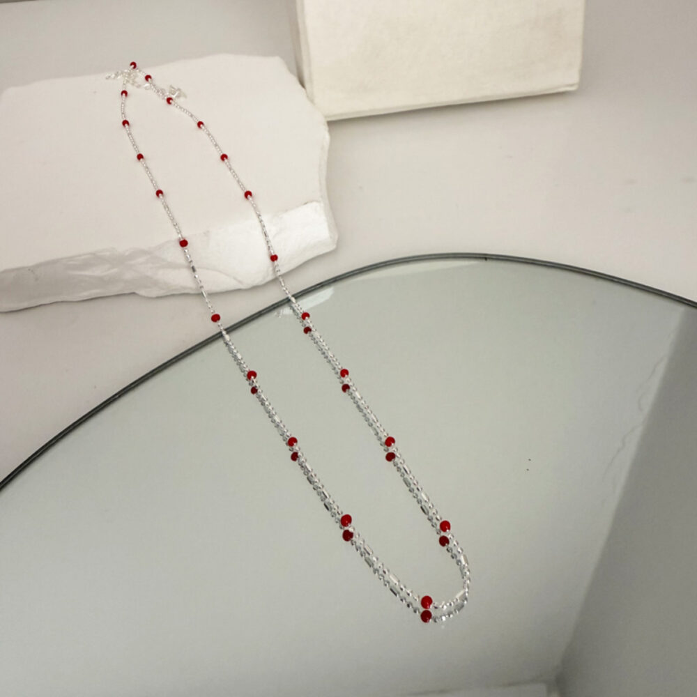Collar Dots rojo plata