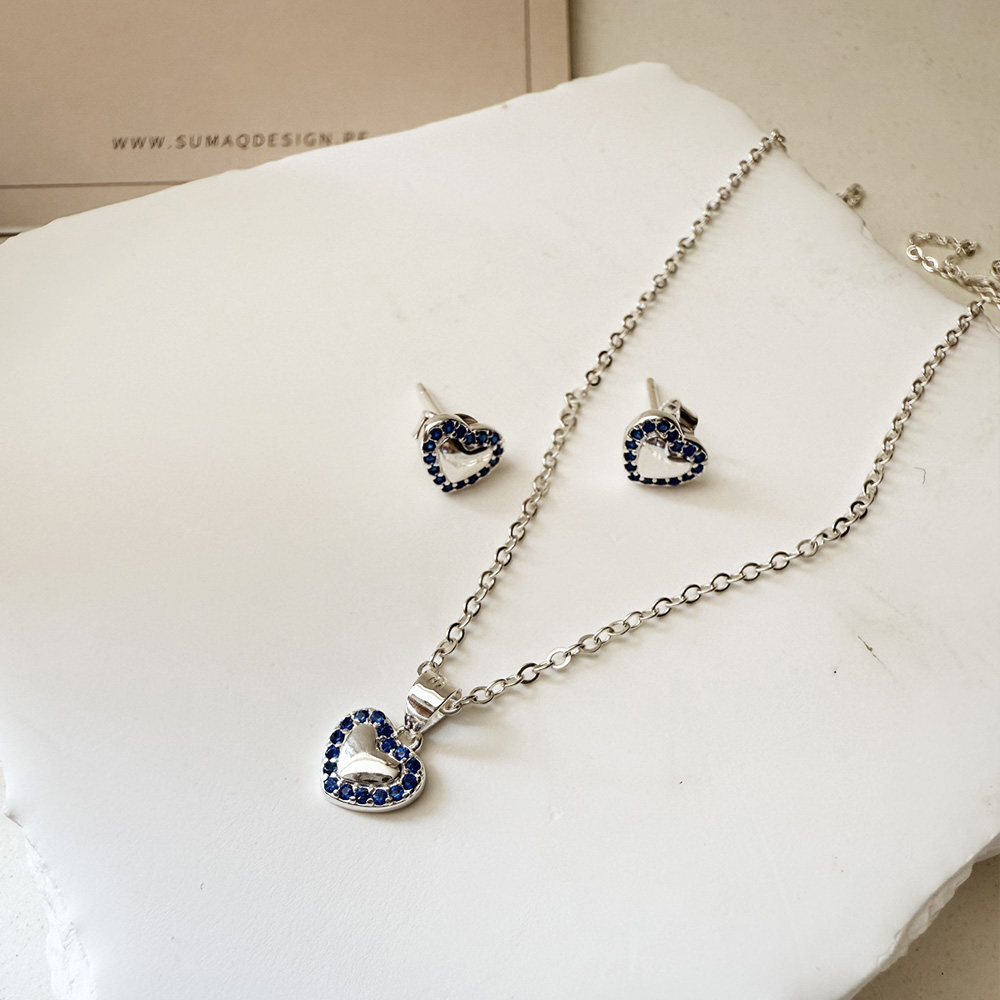 Set dije y arete ojo heary circones azules